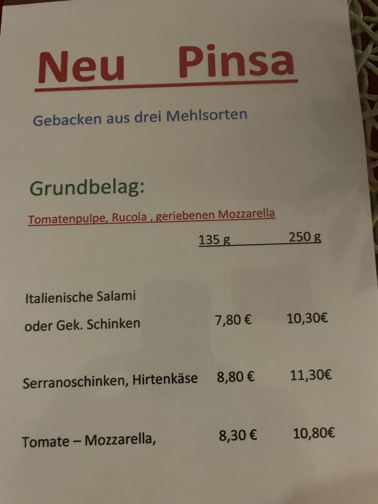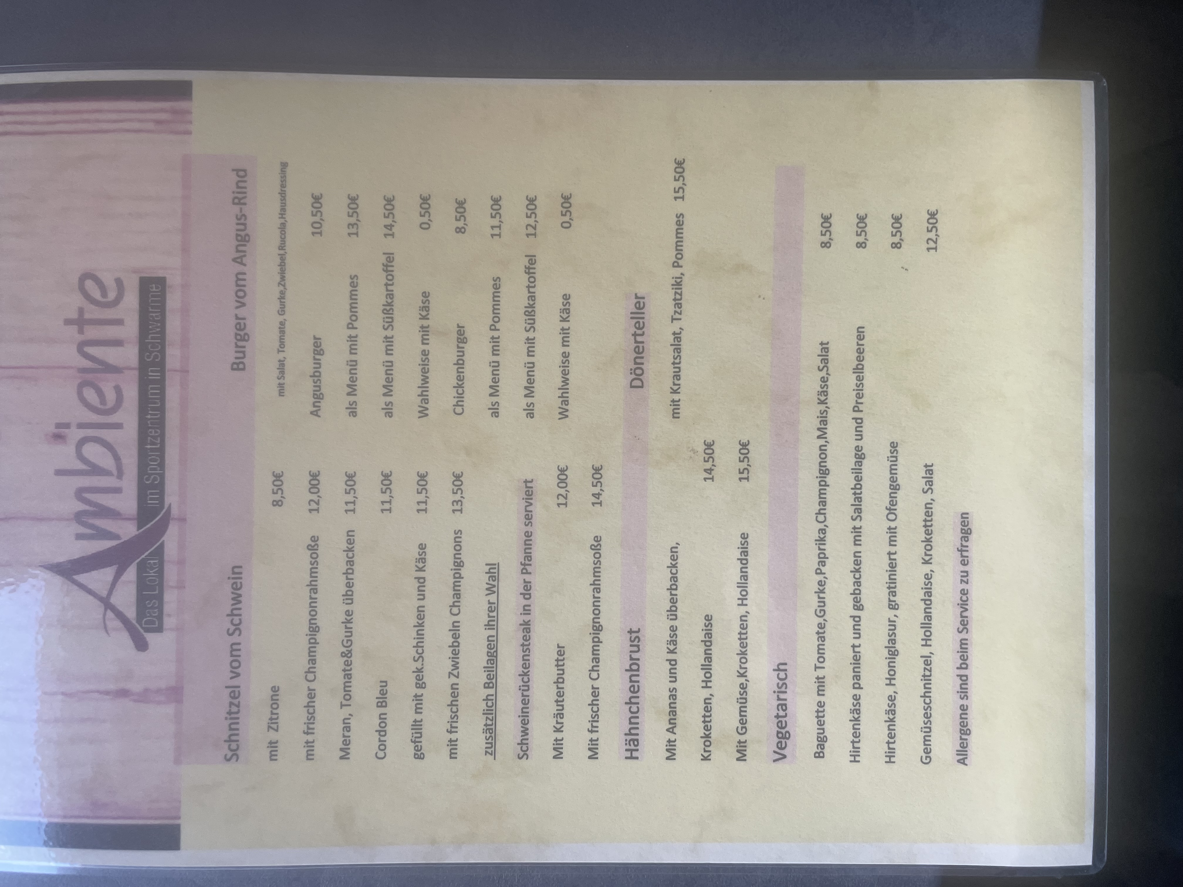 Gerichte einzusehen unter Speise Karte
